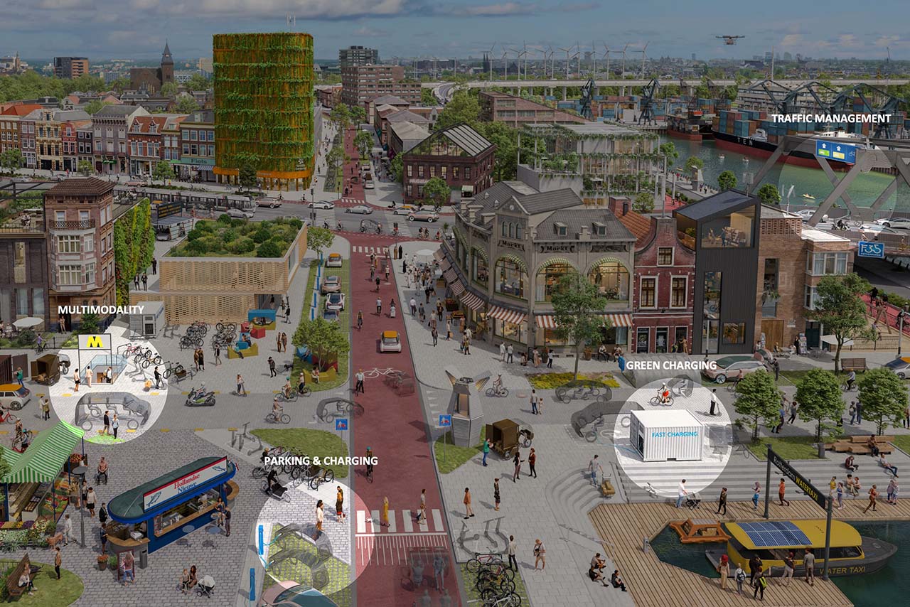 Entscheidend ist natürlich, dass möglichst viele der verbleibenden Autos in der Innenstadt elektrisch und damit emissionsfrei fahren. Sehr erfolgreich war ein Projekt mit der BMW Group mit „eDrive-Zonen“ in der Innenstadt. Wenn ein Hybrid BMW von außerhalb in diese Zone fährt, schaltet er automatisch in den Elektro-Modus. Wie überzeugend und sinnvoll solche Zonen sind, zeigt sich daran, wie schnell sie über Rotterdam hinaus skalierbar sind: Mittlerweile gibt es sie in 153 europäischen Ballungsräumen.